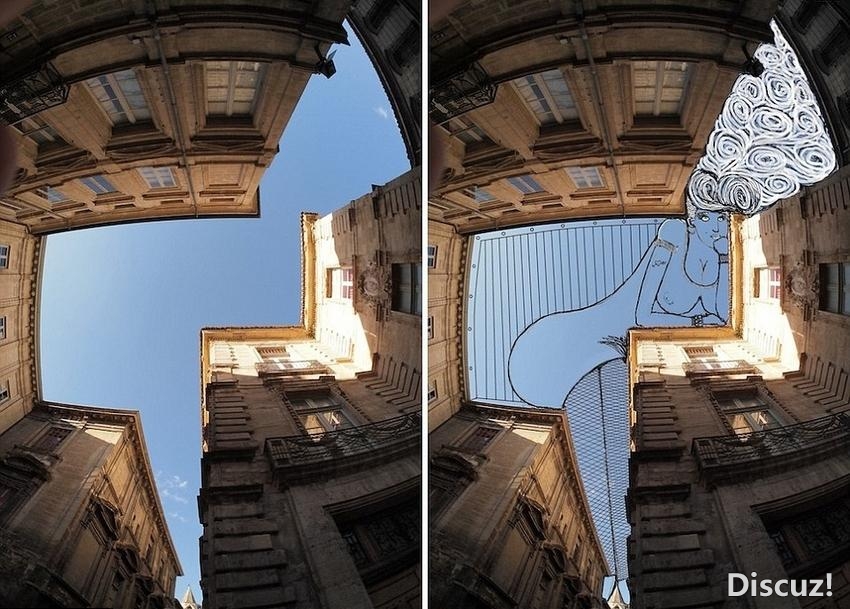 【当代艺术】据英国《每日邮报》4月19日报道,近日,法国摄影师兼插画家托马斯•拉马德(Thomas Lamadieu)环游世界,拍摄建筑群之间有限的天空,并以此为画布,挥洒想象力。拉马德以天马行空的创造性思维,创作出一系列有趣的天空插画。