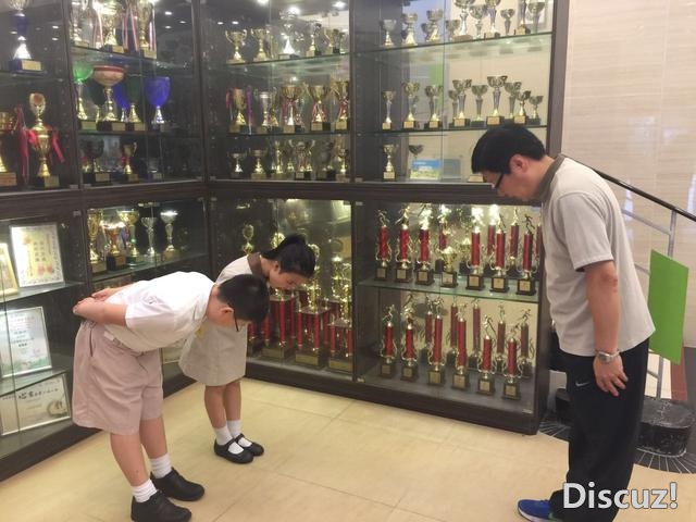 香港孔教学院大成小学的孩子向老师行礼(摄影:李大白)