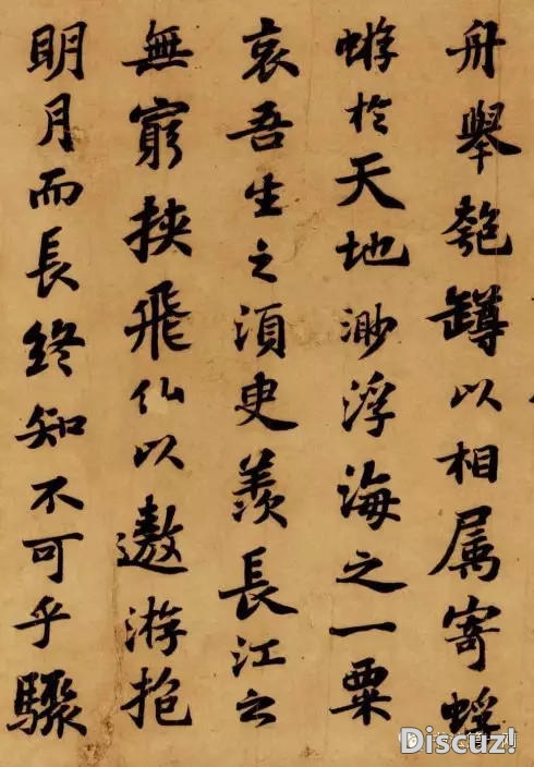 苏轼作书信手点画,任意挥洒,自成风格。其书风沉着、苍劲、豪放,体势多变,刚柔相济。既不同于魏晋时期的那种轻灵、飘逸然而又近乎柔弱软媚的面貌,也不同于盛唐时期的那种雄强刚健、法度谨严然而又近乎死板呆滞的书风。可以说,他的书法完全达到了一个新的美的境界。他的目的,不是给后人树立楷则规范,更不是供统治者把玩赏鉴,而完全是感情的宣泄,个性的显现。正如他自己所云:“我书意造本无法,点画信手烦推求。”宋人之“尚意”,苏轼实是开一代先河的代表性人物。 |