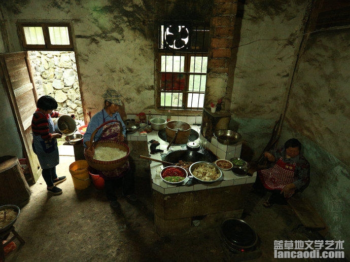 【社会历史】三位大姐后厨烹制流水席。
