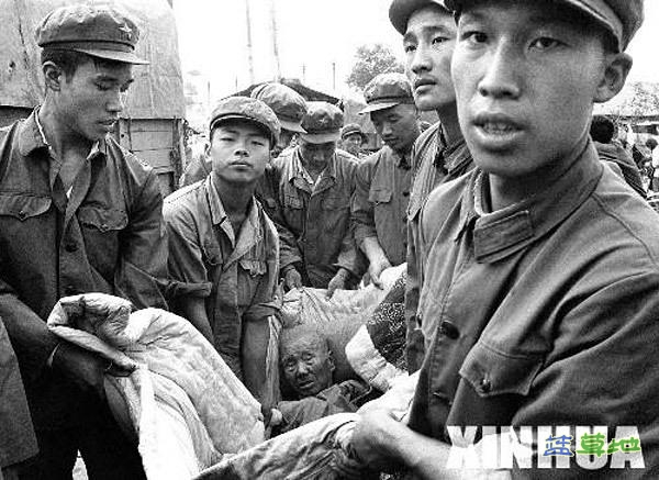 【社会历史】解放军指战员在抢救灾区受伤的群众。