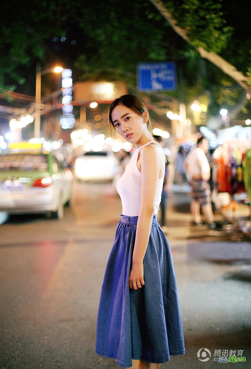 组图:北电女生白澜晒夜市街头照 惬意十足