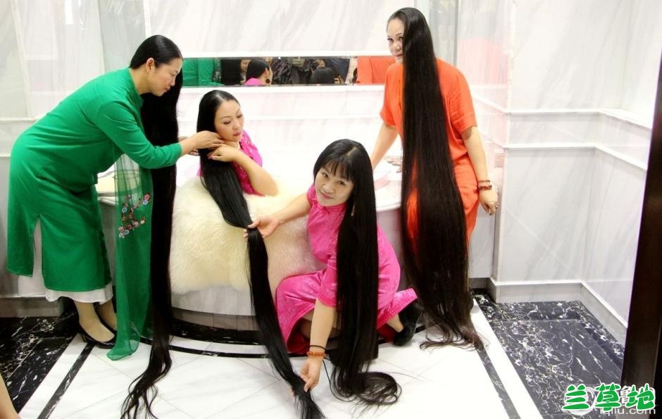 长发美女团体亮相济宁 头发最长者达3.5米