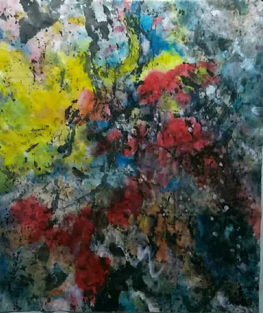 在当今书画市场复古、摹仿(商品画泛滥)的天地里(氛围中),董向阳的作品却独树一帜、风格独特,给人清新之感。真正的艺术是对心灵的刻画,寻求与心灵相通的艺术语言,是发自内心的,是从自己心灵深处悟出来的,不是鹦鹉学舌者所能办到的,是摹仿不来的。心灵的交流,是高层次的意会,所达到的境界不是一般人所能体会到的。古人说:“心有灵犀一点通” , 境界相近才能相通,才能意会。