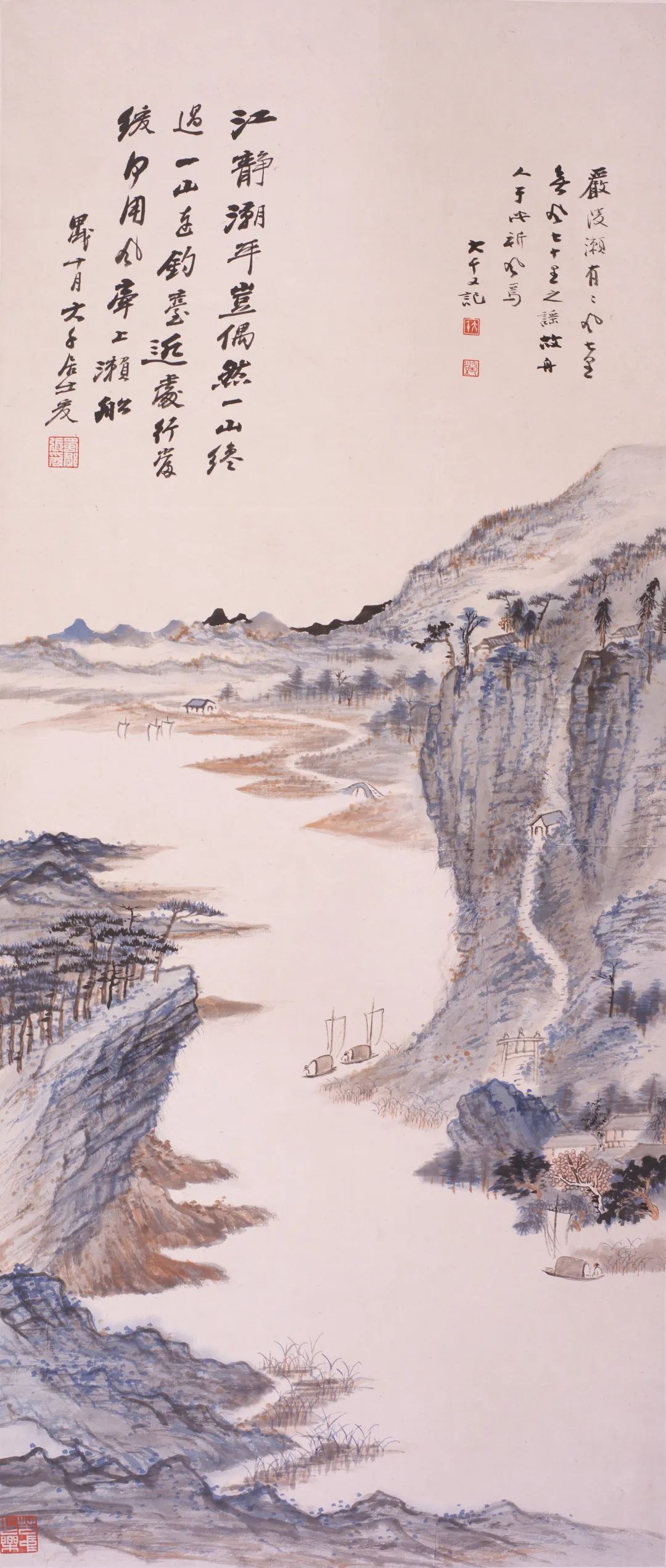 张大千(1899-1983)是近现代书画大家,50岁前的张大千锐意仿古,初入画坛,以一手“假石涛”闻名于世,后远追隋唐,且取法明清各派,成为近现代画史有着较大影响的画家。9月6日起,其早期的画作精品在常熟博物馆“五百年来一大千——吉林省博物院藏张大千书画展”上对外展出。 澎湃新闻在现场看到,展览遴选张大千45幅作品,涵盖了山水、人物、花鸟各个领域,展示了其书画风格的多样性,同时展出的还包括常熟博物馆收藏的张大千老师曾熙与李瑞清的书法作品。而在另一展厅,则呈现了其弟子、常熟书画家、收藏家曹大铁的书画作品与文献资料。师生三代相遇虞山之下,让人一品近现代书画的渊源与传承。 ![]() 张大千 《荷花鹡鸰图》 1946年 ![]() 常熟博物馆“五百年来一大千——吉林省博物院藏张大千书画展”展览现场 展品渊源:张伯驹与吉林省博物院藏张大千书画 张大千,原名张正权,又名爰,字季爰,四川内江人。因在上海松江出家为僧,法号大千,还俗后以“大千居士”为号。张大千曾随兄留学日本,进学校学习染织技术。回国后,与其兄张善孖在沪定名画斋为“大风堂”,拜入曾熙(1861—1930)和李瑞清(1867—1920)门下,曾李二位均擅书画,对其一生画艺影响颇深。 ![]() 现场展出的常熟博物馆收藏的曾熙书法 澎湃新闻 图 ![]() 张大千(1899—1983) 在中国画领域,张大千工笔、写意皆精妙,山水、人物、花鸟无一不擅长,且书法继承碑学,自成一体,早年还擅篆刻,颇有成就。他与齐白石并称“南张北齐”,与溥心畬合称“南张北溥”。其人物画自明清唐寅、陈老莲上溯敦煌壁画;其花鸟画承接宋代宣和画院余风;其山水画以石涛为根基,又植根于宋元,这种扎实深入学习传统绘画经典的精神,为学习前人优秀绘画传统以及如何入古而能出新开拓了一个新的思路。除此之外,张大千又能将青绿山水的技法用于重彩花鸟和人物画,又能将敦煌壁画的技法反过来融合于山水画和花鸟画,这种打破常规,开阔思路的方法也值得后人学习借鉴。 张大千先生的绘画艺术特点,可以用两方面的成就加以概括:一是对中国传统绘画的全面继承;二是晚年形成的泼墨泼彩画风,在近代画坛上颇具震撼性和开创性。大千先生勤于习古、善于习古、精于习古,其所临仿过的各流派、各时代画家达到百位之多,且多得其神髓。 知名艺术史学者、张大千研究专家傅申先生此前曾说:“张大千是历代画家中对传统的绘画研习和了解最勤、最深最广并且是最好的画家,因此他的作品与绘画史最有史的关联。在他的作品中,不但有他个人的画史,也有中国绘画的历史。” 由于疫情未能来到现场的吉林省博物院副院长钱进在视频中表示,张大千书画是吉林省博物院近现代书画收藏的重要收藏体系之一,是上世纪六十年代张伯驹先生担任吉林省博物馆常务副馆长期间,从各地收集并亲自审定而得,以张大千早期作品为主,此次展览精选了其中45件作品,涵盖了山水、人物、花鸟各个门类,为研究张大千晚年以前绘画风格的演变提供了重要的线索和轨迹。 “近十余年,博物馆馆际开放和合作实现了全方位、多元化共赢的局面,展览交流的类别和地域也实现了不断的拓展和深化,此次和常熟博物馆的合作,只是双方开启更深入、更长远合作的第一步,希望今后两馆之间在展览交流互鉴的基础上,拓展合作渠道,扩大合作领域。”钱进说。 据相关文献介绍,1957年,张伯驹被打成“右派”,后又因坚持传统戏剧被停职,遭到批斗。好友陈毅得知张伯驹夫妇的遭遇后,把他介绍给吉林省相关领导,张伯驹夫妇遂到吉林工作。当时,在北京备受冷落的张伯驹夫妇初到长春,就被黑土地上的人们浓厚的情谊所包围。1962年3月,张伯驹不仅被摘掉了“右派”的帽子,还被吉林省委正式发文任命为吉林省博物馆第一副馆长。 ![]() 张伯驹先生晚年和潘素在一起 张伯驹当时不仅注重文物的征集与收藏,还对吉林省博物馆馆藏文物进行考证、鉴定,抽调人员对历代书画、文物进行寻访、征集。吉林省博物院一共收藏了张大千的画作120多幅,这些画作都是上世纪五六十年代低价收购来的。 吉林省博物院相关研究人员曾透露:“我们原始的资料显示,有的张大千画作当年的购买价是2元钱,有的是3元,有的是5元,而且这种几元钱的居多,最贵的一幅花的是50元。张伯驹的夫人潘素是张大千的弟子,他们私交很好。所以,张伯驹到了吉林省博物馆后做的其中一件事就是拿着麻袋去购买张大千的画作。因为张伯驹的名声在外,他的线索很多,所以,每天张伯驹都亲自带队扫街,去过北京的荣宝斋,就连一些私人家里也去征集。” ![]() 张大千 《严陵秋色图》 1934年 大千画作:从早期仿石涛山水到人物花鸟的多样性 二十世纪二三十年代张大千的山水作品,以临仿石涛者最具特色。石涛的笔墨千变万化,细腻轻柔者有之,粗头乱服者有之;雄劲处似千军万马驰过,清冷时幽人独处,无比寂静。大千先生结合自身个性,以超乎寻常的天赋和勤奋加以研习,取为己用,随机应变、触景生情,将石涛的各种技法灵活运用,以适应不同的景物和取得多样化的效果。这一时期的整体风格是清俊空灵,尤其是有多件作品使用了花青,兼以淡墨轻染,清润之气扑面而来。 ![]() 张大千《小蓥华山图》 1940年 ![]() 张大千 《峨眉一角图》 1947年 二十世纪四十年代以后,大千先生山水画的风格有