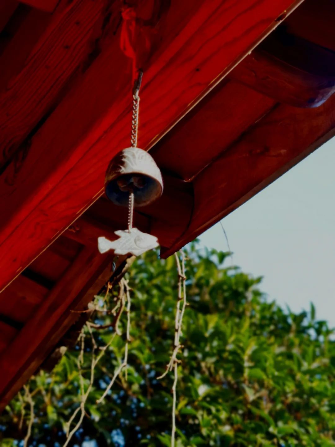 风吹起来,我看到大殿旁边那个风铃,底下是个小鱼儿,发出来的声音非常和谐,给我印象非常的深。这个小风铃代表着人的一种小欢喜的心情吧,随风飘荡。让人能够联想到生活中一些小小的、美好的情绪,飘荡在天空之中,人生之中,人的心头之上。