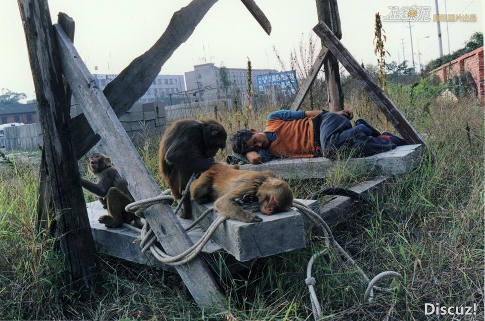 【社会历史】午饭后,老杨和一只猴子躺在一块水泥板上睡着了,另两只猴子坐着打盹