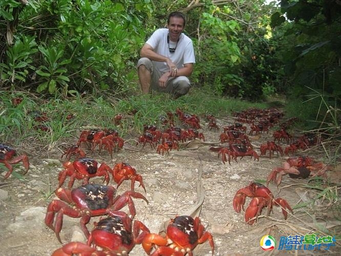 圣诞岛的螃蟹:这座小岛并非如此狭小,这里的土地和岩石缝隙中生活着大约4千万到5千万只圣诞岛红蟹。如果你想要看到它们,你可以等到十月或者十一月的雨季去看它们的大迁徙,它们的迁徙能够持续18天。