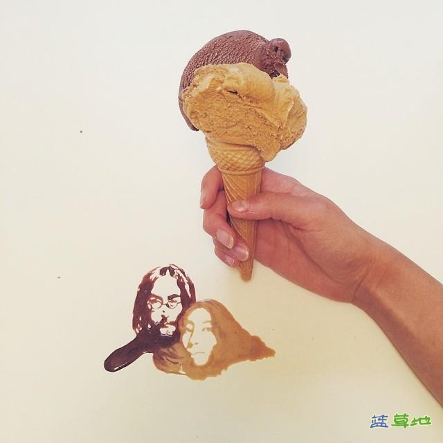 不同味道的冰激凌幻化成不同颜色的水彩笔,经过艺术家Giulia的手,变成了一男一女两个人像。