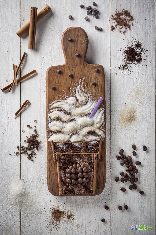 【当代艺术】咖啡粉和咖啡豆制作的冰饮。