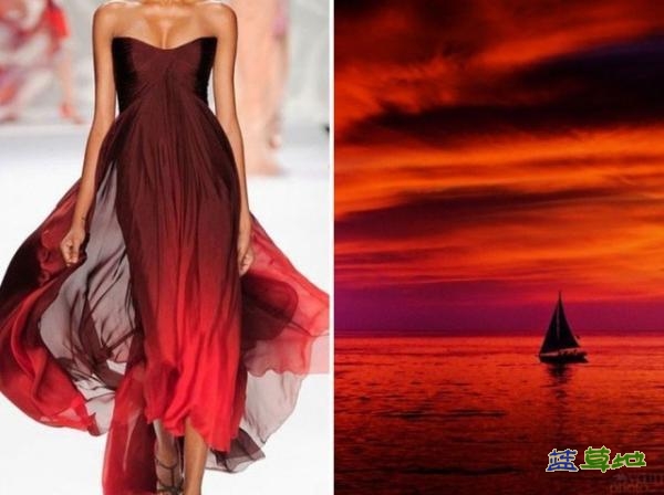 【当代艺术】这款时装表现的是加州多姿多彩的日落时分。