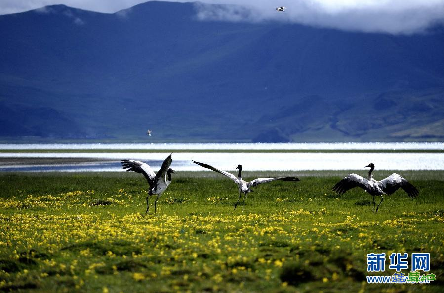【艺术摄影】西藏羊湖湖畔翩翩起舞的黑颈鹤。
