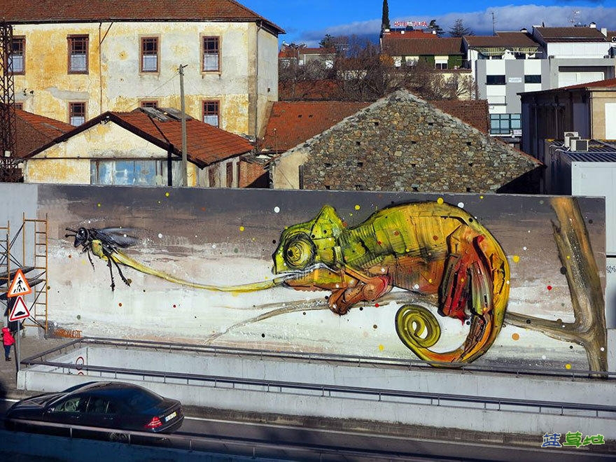 【当代艺术】他把在街道上收集到的垃圾摆成各种造型,如顽皮的猫头鹰肖像、废旧塑料瓶做成的海浪、游泳的鸭子、巨型昆虫等。