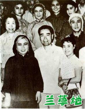 1962年,纪念毛泽东《在延安文艺座谈会上的讲话》发表20周年,周恩来邓颖超观看歌剧《白毛女》后与全体演职员合影。