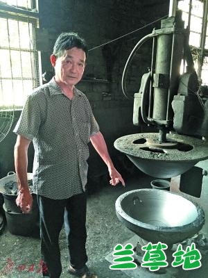 ![]() 汪金元和他的“古董”铸模机。 晌午时分,江西省萍乡市东街镇界头村铸锅厂内依然是一派热火朝天的景象:熔铁炉里正喷出熊熊的火焰,十多名工人有的往高温熔铁炉里投放材料;有的从熔铁炉里取出火红的铁水,然后往铁锅模具里浇灌铁水;有的工人用钢刷将刚刚出炉冷却后的大铁锅进行打磨。今年70岁的汪金元是萍乡市东桥镇出了名的“铁锅匠”,他祖上世代以铸铁锅为生,这门绝艺至今已传承了600多年。这种铁锅经“祖传秘方”炼制,曾是皇帝的“御用炊具”。但如今,老匠人也面临新问题,铁锅绝艺也面临失传。为了铁锅手艺不失传,汪金元愿意将铁锅“祖传秘方”传给外人,他也公开向社会“海选”铁锅绝艺的传人。 文、图 广州日报记者肖欢欢、李华 汪金元的铁锅厂晚上和早上开工,下午停工。“锅炉车间的温度会比外面的温度高10摄氏度以上,外面的温度35摄氏度,里面的温度就有45摄氏度,像烤火一样,人受不了。”中午12时,十多名工人聚在一起,每人一瓶啤酒、一碗米饭、一碟小菜,还有从田间地头采摘回来的黄瓜,蘸着酱油吃。这是工人们一天最温馨的时光。 铁锅曾是慈禧“御用炊具” 热风炉里冒着热泡的铁水温度高达1300摄氏度。汪金元的皮肤变得黝黑,和地上的焦煤颜色差不多,鼻孔中也是一片黑色,沾着煤灰,煤灰混合着汗渍,在脸上形成一道黑色的泥印。因为要长期端着50斤重的铁水往模具里面倒,汪金元也练就了一身力气。尽管已经是70岁的老人,但他用铁勺端着一瓢50斤的铁水,走到30米开外的冲床前,依然稳稳当当,老人身上甚至显示出健硕的肌肉。 汪金元已记不清自己是这种古法铸锅工艺的第几代传人了。父亲和他讲过,从自己的高祖父那一代起,他家已是萍乡闻名遐迩的冶炼世家,人称“铁锅王”。地方志显示,萍乡这种传统的手工铸锅工艺,早从明朝起就已经传下来了,迄今为止已经有600多年历史了。到了清朝乾隆年间,这种手工铸锅工艺更是达到登峰造极的地步,这种手工铸锅由于工艺精美,厚薄均匀,表面光滑,并且炒菜不容易烧焦烧糊,炒出来的菜格外好吃,所以深受朝廷欢迎,成为朝廷御用的炊具,乃至贡品,就连慈禧太后也吃过这种铁锅炒的菜。清朝中期,这里的手工铁锅“御用炊具”的名声传遍国内,除了江西外,周边的广东、福建、湖北等地也都大量使用萍乡手工铁锅。直到20世纪80年代,这个铁锅厂的年产铁锅数量还在30万个以上,成为“铁锅之乡”。 ![]() 冷风炉铸造铁锅。 ![]() 成型后的铁锅。 “祖传秘方”相传600余年 在汪金元看来,萍乡铁锅工艺之所以能发展起来,并且成为一绝,一是因为当地有大量的冶炼燃料——焦煤;二是有特别适合做锅模的泥料;三是这里聚集了一大批来自全国的顶尖手工匠人。600多年来,这种传统的铁锅铸造工艺一直是他们家的“祖传秘方”。在界头村,熊熊炉火600多年来一直没有熄灭过。 这里的铁锅究竟牛在哪里?在汪金元看来,首先是原材料上乘。这里的冶铁炉温度只有1300多摄氏度,是冷风炉,炼出来的是“生铁”。为了追求产量,现在的铁锅工艺一般是热风炉,炉温达到1600摄氏度,炼出来的是“熟铁”,其用料参差不齐。汪金元说, 30年前,萍乡生产优质焦煤和低硫、低磷的铁矿石。汪金元还是孩童时,就要跟着父亲到十多公里外的矿上去挑矿,一次挑100多斤,一天两个来回。先用焦煤和铁矿炼制出灰口铁,然后再用灰口铁铸造铁锅。如今,这种铁矿石已经被开挖殆尽。为了维持铁锅的高品质,他从不迁就,宁愿高价从河南运入纯度高的灰口铁矿。“所以,我们的铁锅低硫、低磷,高硅、高碳,重金属从来不会超标,质检部门都来检查过。” 其次,则是铸锅过程的精益求精。配料时,原煤、焦煤、生铁和辅助材料,按一定的比例放进去。这种“祖传秘方”外人根本无从掌握。 此外,在模具浇铸,也就是压锅阶段也有大学问。 “铁锅绝艺”面临失传 对于每一口铁锅,汪金元都有着近乎偏执的苛刻。有些铁锅,普通人根本看不出瑕疵,汪金元还是抡起一把大锤,一下把锅砸得稀烂,工人们看着都心疼。一如厂子里老旧的机械设备,在这里干活的也都是一些老伙计。铸锅厂厂长王海清说,如今厂里的十多名工人年龄最小的也有60岁,最大的已经70多岁,就连招的两个学徒工也是40多岁的中年人。如今愿意到厂子里来工作的人寥寥可数,很多年轻人宁愿到外面打工,也不愿到铁锅厂,因为实在太辛苦。别的不说,在40摄氏度的高温下围着锅炉站12个小时,一般人根本吃不消。普通人站上半小时,衣服就已湿透。 如此高强度的工作,工资却低得可怜。几名“老哥们”都是计件工资,压模机操作工,每压一个铁锅,1.25元,而锅炉工在每生产一个铁锅中则只能分得0.25元。工人工资最多的时候4000多元/月,最少的只有1000多元/月。 汪金元和同事每天凌晨4时就进铸锅房,一直忙到近中午。他们将铁水倒进压模机,在气压的作用下,铁水5秒钟就变成通体透红、冒着热气的铁锅。而后熟练的工人用钳子夹出铁锅晾凉、打磨、抛光、检查质量。在砂轮机刺耳的摩擦声里,一口口生铁锅“诞生”了。 汪金元是一个倔强的老锅匠。但他很快发现,这种想法落伍了,虽然自己的“祖法”铁锅质量上乘,但现在农村,用土灶的人已经越来越少。而铁锅的替代品越来越多,比如平底锅、不粘锅、电炒锅、电磁炉等。 而他生产的铁锅,价格也一降再降。最