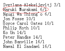 2015年诺贝尔文学奖赔率榜,村上春树依旧第二