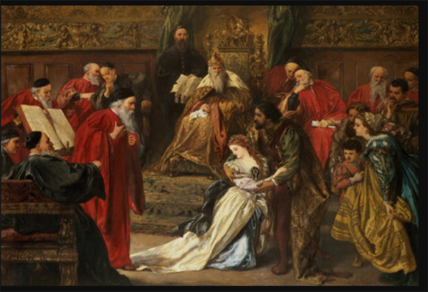 "寇蒂莉亚与李尔王",约翰·吉尔伯特绘(1873)。