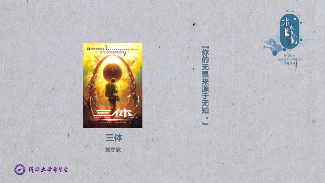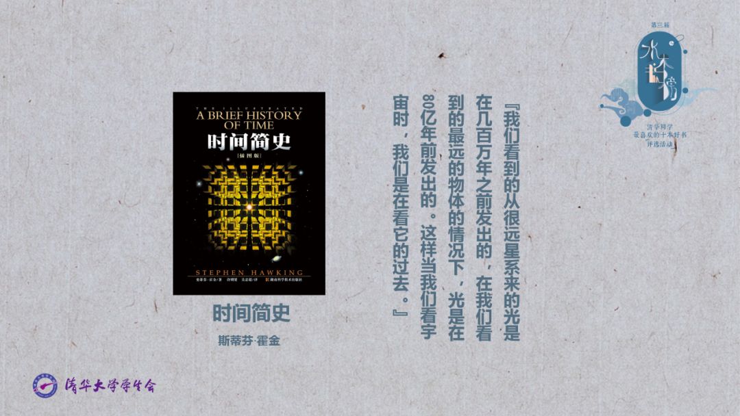 本文原标题:《世界读书日,清华"好读书" | 您有一份"水木书榜"书单请查收》 适逢世界读书日,清华大学"世界读书日·师生共话读书"活动于4月22日在清华大学图书馆李文正馆(北馆)举行。清华大学党委副书记过勇,《清华大学荐读书目》主编、原校党委副书记胡显章,当代国际关系研究院院长阎学通,以及师生、校友等200余人共同见证了第三届"水木书榜·清华学生喜爱的十本好书"评选活动揭榜及"好读书奖学金"颁奖仪式,师生共话读书。 共话读书 ![]() 读书分享 活动现场,过勇和阎学通分别分享了阅读感受,勉励同学们养成阅读的习惯,在读书中提升自我。 ![]() 过勇讲话 过勇围绕"好读书、读好书、读书好"分享关于读书的三点体会。他谈到,"好读书"奖学金设立的目的不仅是鼓励全校同学认真学习,还希望勉励大家养成读书的习惯。希望获奖同学能够倡导校园读书风尚,带动更多同学好读书、读好书,跳出自己的专业领域扩大阅读面,多读经典,甚至读一些闲书。过勇还分享了他阅读《全球通史》、《伯罗奔尼撒战争史》的体会,希望大家从全球化的视角出发,思考新时代一个国家的道路如何选择,投身于建设祖国的伟大事业。 ![]() 阎学通谈读书的目的 阎学通分享了对阅读的理解和挑选书籍的方法。他说,读书最大的目的,是扩展自己的知识面,知道自己所不知道的,从读书过程中得到启发引起思考,最终培养独立思考的能力,养成独立的人格。 《清华大学荐读书目》 活动邀请了胡显章介绍2017年12月新发布的《清华大学荐读书目》。 ![]() 胡显章作介绍 2015年,图书馆邀集了清华大学国家大学生文化素质教育基地、教务处和部分院系的知名教授组成了编委会,对1997年版的《清华大学学生应读书目(人文部分)》(张岂之、徐葆耕主编)进行了修订,历时两年半,编写而成新版《清华大学荐读书目》。胡显章提到,推荐书目作为引导学生阅读的重要方式,在清华有很好的历史基础。《清华大学荐读书目》能引导同学主动阅读,形成良好的校园阅读风尚。 好读书奖学金 今年,共有48名清华学生被授予"好读书"奖学金。过勇、胡显章、阎学通和校团委书记邴浩共同为获奖学生代表颁奖。 ![]() 颁奖现场 "好读书"奖学金由杨绛先生以钱鍾书、杨绛先生2001年上半年所获稿酬72万元及其后所发表作品获得报酬的权利捐赠给清华大学而设立。"好读书"奖学金是清华校训化成的殷切期望,杨绛先生曾说,清华校训是"自强不息,厚德载物",这要求学生们从自身做起,努力学习,求知识,学本领,用高尚的思想境界承担重任,使自己的努力更有价值。 以杨绛先生"读书是一生的信仰"作为自己的座右铭,法学院大三学生王春阳代表获奖同学分享了阅读伴随自己成长的故事。"与书相伴的日子,是我大学最美的回忆,也是人生中最宝贵的财富。"王春阳庆幸自己能圆梦清华,遨游书海。加入红楼梦协会、"林枫计划"之后,更是感受到"读书不仅是一个人的享受,交流和学习的机会更是园子里独有的宝贵财富"。 水木书榜 现场揭晓第三届"水木书榜·清华学生喜爱的十本好书":《白鹿原》《霍乱时期的爱情》《菊与刀》《理想国》《毛泽东选集》《全球通史》《人类简史》《三体》《时间简史》《艺术的故事》。邱勇校长向同学们推荐的《艺术的故事》深受同学喜爱,高票入选。 ![]() ![]() ![]() ![]() ![]() ![]() ![]() ![]() ![]() ![]() 自2016年发起,每年"水木书榜"的评选经提名候选书籍和正式评选两个环节,由同学自己选书。此次"水木书榜"评选面向全校同学,征集了千余份书单和五千余份投票,产生30本候选书籍,并最终评选出了10本上榜好书。 30本候选书籍 《白鹿原》陈忠实 《霍乱时期的爱情》加西亚·马尔克斯 《激荡三十年》吴晓波 《菊与刀》鲁思·本尼迪克特 《巨人的陨落》肯·福莱特 《科学革命的结构》托马斯·库恩 《理想国》柏拉图 《利维坦》霍布斯 《论中国》亨利·基辛格 《毛泽东选集》毛泽东 《美学散步》宗白华 《梦的解析》西格蒙德·弗洛伊德 《平凡的世界》路遥 《枪炮、病菌与钢铁》贾雷德·戴蒙得 《全球通史》斯塔夫里阿诺斯 《人类简史》尤瓦尔·赫拉利 《三体》刘慈欣 《时间简史》史蒂芬·霍金 《史记》司马迁 《数学之美》吴军 《谈美》朱光潜 《万历十五年》黄仁宇 《未来简史》尤瓦尔·赫拉利 《现代艺术的意义》约翰·拉塞尔 《乡土中国》费孝通 《艺术的故事》E·H·贡布里希 《语言本能》史蒂芬·平克 《中国古代科学思想史》李约瑟 《资本论》马克思 《走在人生边上》杨绛 |