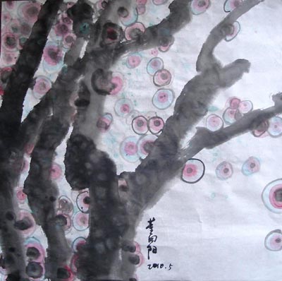 在当今书画市场复古、摹仿(商品画泛滥)的天地里(氛围中),董向阳的作品却独树一帜、风格独特,给人清新之感。真正的艺术是对心灵的刻画,寻求与心灵相通的艺术语言,是发自内心的,是从自己心灵深处悟出来的,不是鹦鹉学舌者所能办到的,是摹仿不来的。心灵的交流,是高层次的意会,所达到的境界不是一般人所能体会到的。古人说:“心有灵犀一点通” , 境界相近才能相通,才能意会。