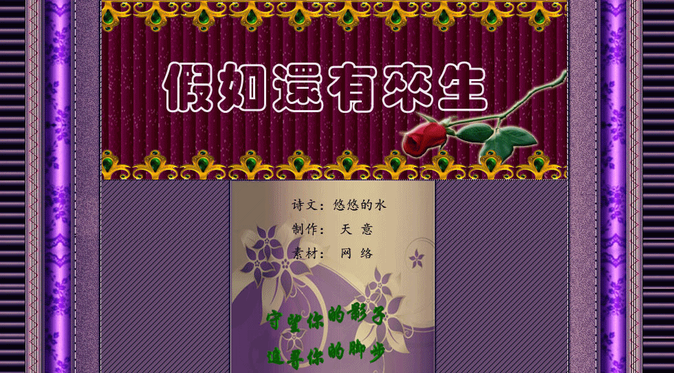 已有 989 次阅读2015-5-6 20:32 |个人分类:音画|系统分类:日志| 假如还有来生, 诗文:悠悠的水, 制作:天意