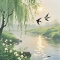 浅夏小景 晓夏朝阳洒金辉, 柳碧花妍碎芳菲, 谁家燕子双剪尾, 水面盘旋小风吹。 2025.05.12.07:18