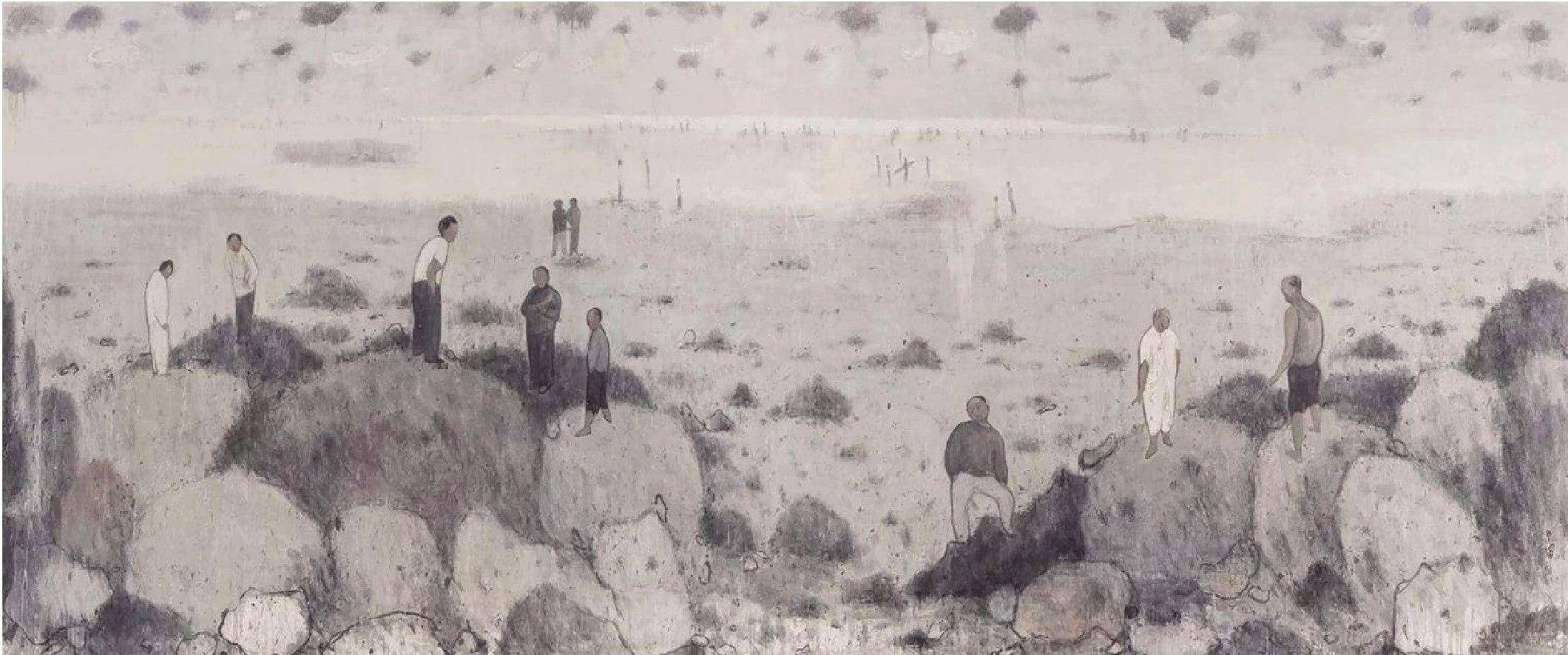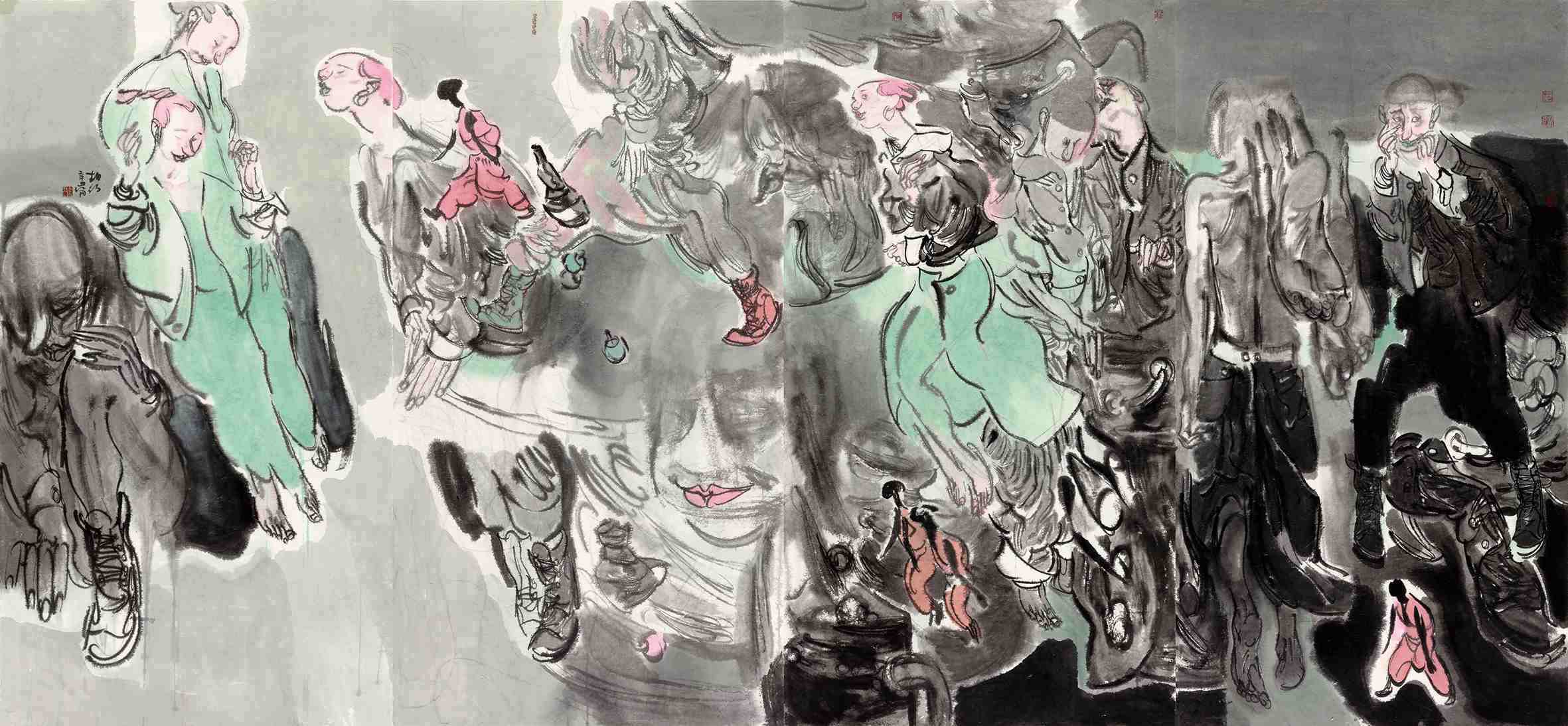 浮生(国画) 228×548厘米 2018年 杜小同 艺术功能的转向 由“出世”向“入世”的转向,是“当代水墨”不同于“文人画”的功能特征。我们已经习惯地认可了中国绘画远离尘世、情系花草泉林,重怡情养性、轻现世关怀的艺术功能。这种功能特质的形成,有其特殊的历史原因。 我们知道,中国绘画有着独特而厚实的“文人画”传统,而且至今影响着当代中国画的创作研究。“文人画”,顾名思义,是文人作的画,是古代官员文人“立德、立功、立言”之余事,是情系江山社稷、治国理政之余遣兴怡性之工具。因此,在古代官员文人笔下,绘画无需承载太多的社会功能。正如元代倪瓒所说:“仆之所谓画者,不过逸笔草草,不求形似,聊以自娱,写胸中逸气耳。” 不同于文人画家的非职业特征,“当代水墨”创作者大多为现代艺术教育背景下的专业画家。因此,“入世”的功能转向,使“当代水墨”不再是文人笔下的悦性之物,而是直面现实、追问人生、考量价值、实现理想的精神游历。也因此,“当代水墨”对现世社会问题和当代人的精神境遇的贴近关注,就成其突出的特点。 已持续3年之久的新冠肺炎疫情和由此引动的大国实力比拼,社会秩序的改变,美好与丑恶、文明与愚昧的双向撕扯,一再地提醒着人们对人与人、人与社会、人与自然等涉及生命终极意义的思考,也已成为“当代水墨”的表现主题。不仅如此,我们在“当代水墨”作品中看到大量以民生、环境、战争、金融、互联网乃至元宇宙、虚拟世界等现实问题为主题的表达,“当代水墨”对当下问题的关切,不断刷新着人们对固有中国画主题表达的认知。