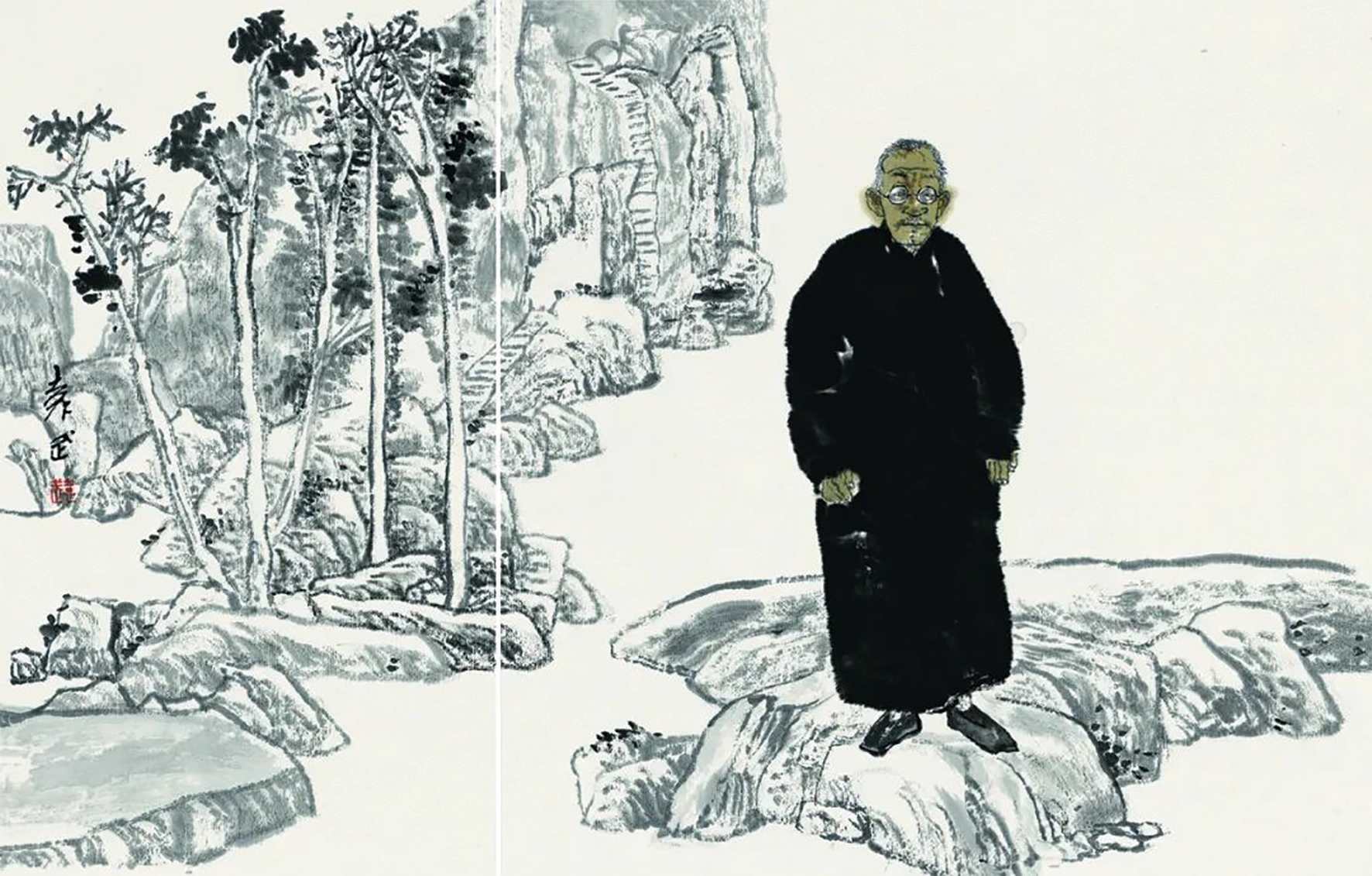 章太炎 (国画) 34×54厘米 2016年 袁武 语言形态的延展 “当代水墨”继承了“文人画”笔墨语言在精神功能开发上的丰硕成果,并拓展了中国绘画语言,其中包括笔墨语言和表现空间。 19世纪照相机的出现,改写了西方绘画的历史,唤醒了西方绘画语言的变革,由记录功能向审美功能的转变,即由“再现”向“表现”功能的转变,使绘画自身语言的审美与精神功能得以开发。印象派的出现和之后野兽派、立体派、抽象绘画的出现,符合绘画语言演进的自身逻辑,凸显了绘画语言的独立价值。 而中国绘画自“文人画”始,笔墨对精神意旨的承载已成自觉,笔墨的表现性功能在1000多年的“文人画”历史中被演绎得淋漓尽致,不断开发笔墨和构图、造型、色彩等绘画语言元素在精神表现中的独特作用,使其成为精神表达的重要载体,是“当代水墨”又一突出的特点。 “当代水墨”赖以生成的全球化和网络化社会环境,使“当代水墨”艺术家的视野由“文人画”不断放大为对全域化图像资源的关注。远古蛮荒艺术、彩陶青铜纹样、宗教艺术、墓室壁画、汉画像砖,还有民间艺术、儿童艺术和世界各国优秀的民族民间艺术,乃至发生在当代的数码艺术、电子图像等,均是作用于“当代水墨”语言研究的图像资源。因此,“当代水墨”语言形态的多样化和非“文人画”倾向,突破了“文人画”的语言规范,放大了水墨语言的表现空间。 “当代水墨”对抽象形式结构的自觉把握,强化了画面的形式张力;有意味的造型方式,超越了对自然物象的“再现”式描摹;对色彩的情绪化主观处理使色彩不再是“随类赋彩”,从而进入“随心赋彩”、从心所欲的自由境界。 笔墨是中国画的核心语言,也是中国画最具表现性的语言方式。1000多年来,其对中国画材质美感和语言精神功能的开发,积累了丰富的实践经验,建立了独有的、完备的价值体系。“当代水墨”很好地继承了这一优秀传统,并在语言的极致化追求中,不断压缩笔墨和材质的物理属性,不断放大笔墨和材质独立的审美与精神功能,这不仅接续了“文人画”的“象外之象”“象外之境”的审美追求,同时也暗合了当代艺术语言开发的内在逻辑。