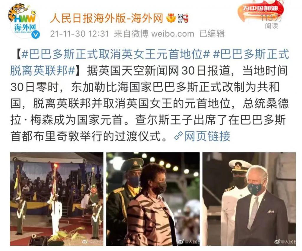 但也并非所有人都买账——去年 11 月底,加勒比岛国巴巴多斯就 " 炒 " 了英国女王。