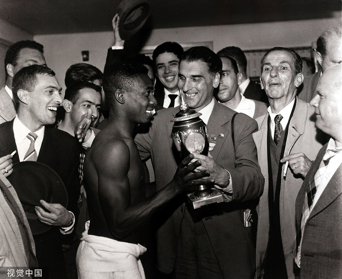 当地时间12月29日,巴西圣保罗市阿尔伯特·爱因斯坦医院发布公告称, “球王”贝利因结肠癌引发多器官衰竭去世,终年82岁。 贝利是足球历史最佳球员之一,拥有“The King of football”(球王)称号,一生共夺得3次世界杯冠军,出场1366场比赛,上演92次帽子戏法,踢入1283个进球。贝利是世界杯最年轻进球者,世界杯最年轻冠军获得者,也是目前唯一一位三夺世界杯冠军的人。 贝利用自己的一生和足球一起,写着这段绿茵场上的传奇。 ![]() 1970年墨西哥世界杯,球王贝利在本次世界杯中大放异彩,赢得第三个世界杯冠军。 走出贫民窟 贝利原名埃德松·阿兰特斯·多·纳西门托(dson Arantes do Nascimento),1940年10月23日出生于巴西特雷斯科拉松伊斯镇的一个贫寒家庭。年轻的贝利喜欢在小镇街头踢球,并靠给别人擦皮鞋来补贴家用。 ![]() 贝利正在为比赛进行训练。 贝利11岁时,巴西前国脚布里托发现了他的足球天赋,几经辗转把他带到了桑托斯队,从此开启了贝利的职业生涯。 ![]() 1958年,贝利在桑托斯足球俱乐部对阵瓜拉尼队的比赛中进球。 ![]() 1963年9月,桑托斯vs博卡青年,贝利(左)和博卡青年的后卫一起看球。 ![]() 当地时间1973年6月3日,美国加州洛杉矶,贝利在体育场带球穿过场地,墨西哥瓜达拉哈拉的防守球员试图阻挡。 ![]() 当地时间1975年,巴西,桑托斯vs科林蒂安的比赛中,贝利在投球。 三捧雷米特杯 1957年,贝利首次入选巴西国家队,为国征战。在国家队期间共夺得1958、1962、1970年三届世界杯冠军,巴西得以永久保留雷米特杯。 ![]() 1958年,巴西球星贝利的肖像照。球王贝利在职业生涯中参加了1958-1970四届世界杯赛事并三次夺冠,贝利在所参与的12场比赛中打进12球。 ![]() 1958年,球王贝利在巴西队踢球。 ![]() 1965年6月2日,马拉卡纳体育场,里约热内卢,巴西5-0比利时,贝利倒钩踢球。 1958年瑞典世界杯,这是贝利第一次在世界杯比赛中亮相。 在1/4决赛中,巴西迎战威尔士,贝利射进全场唯一进球,成为世界杯最年轻进球者。半决赛对战法国,贝利在下半场仅用时24分钟,上演了一出精彩绝伦的帽子戏法。最终在决赛时贝利共进2球,巴西队以5:2战胜瑞典,第一次获得世界杯冠军,17岁的贝利成为世界级球星。 ![]() 1958年6月29日,瑞典世界杯决赛,贝利和瑞典门将卡尔·斯文森争夺球权。 ![]() 1958年6月29日,瑞典世界杯决赛,下半场第55分钟,贝利从头顶挑过后卫,随后凌空抽射将球射入网窝。 ![]() 1958年6月29日,瑞典世界杯决赛,瑞典2-5巴西。贝利和齐托庆祝他们赢得了巴西史上第一个世界杯冠军。 ![]() 1958年6月29日,瑞典世界杯决赛,打入两球的贝利被热情的巴西球迷所包围。 ![]() 1958年6月29日,瑞典世界杯决赛,瑞典2-5巴西赢得世界杯冠军。贝利从俄罗斯人手里接过胜利的奖杯。 1962年智利世界杯,贝利首战即受重伤,从此告别那届世界杯。之后由加林查领衔巴西队3-1击败捷克斯洛伐克队,夺得了世界杯冠军。 ![]() 1962年6月2号,智利世界杯决赛,贝利伤退。 ![]() 1962年6月17日,智利世界杯决赛,巴西3-1战胜捷克斯洛伐克,贝利拥抱队友。 ![]() 1962年6月17日,智利圣地亚哥,在巴西队以 3-1 战胜捷克斯洛伐克队的世界杯决赛后,贝利举起了雷米特杯。 1970年墨西哥世界杯,决赛面对防守顽强的意大利队,贝利贡献1个进球和2次助攻,帮助巴西队4-1获胜,拿到了自己职业生涯最后一次世界杯冠军。时至今日,贝利依然是唯一一位三夺世界杯冠军的球员。 ![]() 1970年6月21日,墨西哥世界杯决赛,贝利带球过掉意大利后卫塔奇西奥·伯格尼奇。 ![]() 1970年6月21日,墨西哥世界杯决赛,巴西对战意大利。贝利在比赛中打进第一粒进球。 ![]() 1970年,墨西哥世界杯,贝利庆祝进球。 ![]() 1970年6月21日,墨西哥世界杯决赛,巴西4-1意大利。贝利高举奖杯庆祝胜利。 摘满荣誉 在贝利的职业生涯期间,除去3届世界杯冠军,还获得2次南美解放者杯冠军、2次洲际杯冠军、6次巴西全国锦标赛冠军(前身),11次圣保罗州足球甲级联赛冠军。共出场1366场比赛,进1283球,该数字被载入吉尼斯世界纪录(正式比赛进球757个)。巴西总统雅尼奥·奎德罗斯专门立法称他为“不可出口的国宝”。 ![]() 1962年洲际锦标赛(世界俱乐部锦标赛),桑托斯球员吉尔马(左)和贝利在洗澡时捧着奖杯,他们在第三场比赛中1-0击败AC米兰夺得冠军。 ![]() 当地时间1969年11月19日,巴西里约热内卢,球王贝利亲吻他打进职业生涯的第1000球的足球。 ![]() 当地时间1969年11月19日,巴西里约热内卢,兴高采烈的贝利骑在球迷的肩膀上,被记者们团团围住,手里拿着他打进第1000个进球的足球。 ![]() 当地时间1969年12月2日,巴西里约热内卢,球王贝利在由足球组成的胜利数字前庆祝他的第1000个进球。 1971年7月,贝利宣布退出巴西队。1974年10月,贝利宣布退役。 ![]() 当地时间1974年10月8日,巴西,巴西足球运动员贝利结束了他18年职业生涯中的最后一场比赛,离开球场时被球员和媒体包围。由于大腿受伤,他退出了桑托斯对阵庞特普雷塔的比赛。 1975年,35岁的贝利在美国纽约宇宙足球俱乐部复出,并在1977年夺得了第一个北美联赛总冠军,同年10月再次宣布退役。 ![]() 当地时间1975年6月15日,巴西超级巨星贝利第一次穿上纽约宇宙队的队服亮相,进入唐宁球场参加与达拉斯龙卷风队的比赛。 ![]() 美国达拉斯,贝利(10号)运球过达拉斯旋风队的尼尔·科恩(2号),宇宙队在表演赛中1-0获胜。贝利在下半场打进