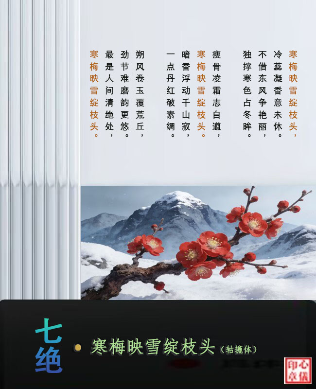 七绝·寒梅映雪绽枝头(轱辘体)
