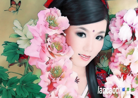 叶簇低昂倾国色,蕊开深浅满阑干。