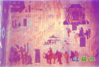 敦煌莫高窟北壁西端所绘的张骞出使西域的画面。此图也是现存最早的“张骞出使西域图”。