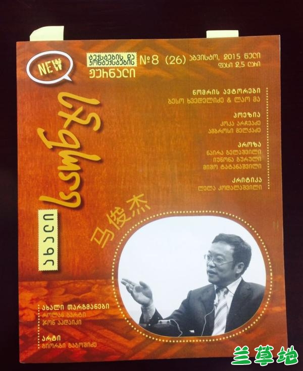 森哈达带来劳马小说集的多个译本。他小心翼翼地拿出一本杂志介绍,2015年9月劳马的小说集在格鲁吉亚出版,且登上这个国家最高级别杂志的封面,这也引起了格鲁吉亚文学界的广泛关注。